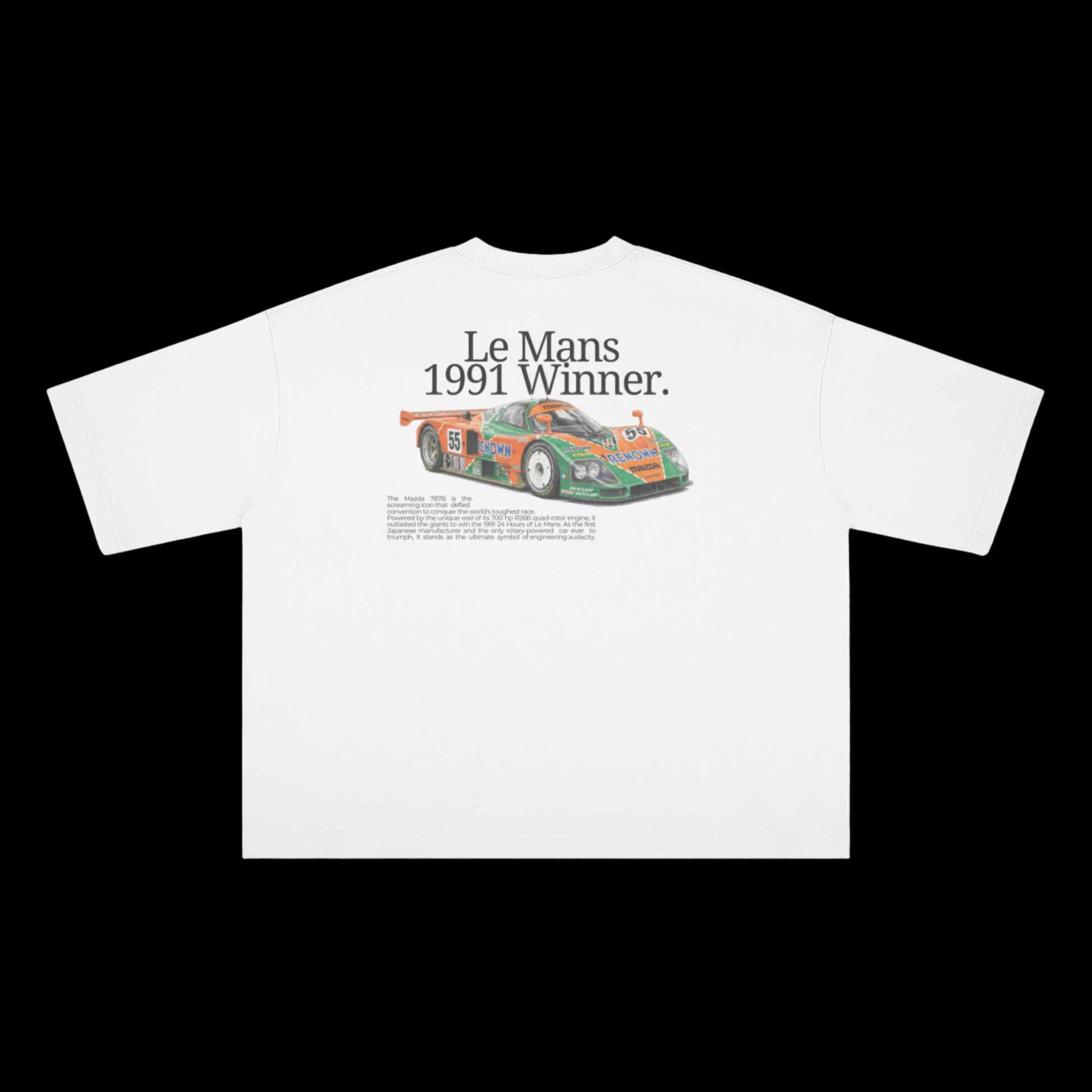 Célébrez la victoire historique de la Mazda 787B aux 24H du Mans 1991, l'unique légende à moteur rotatif.